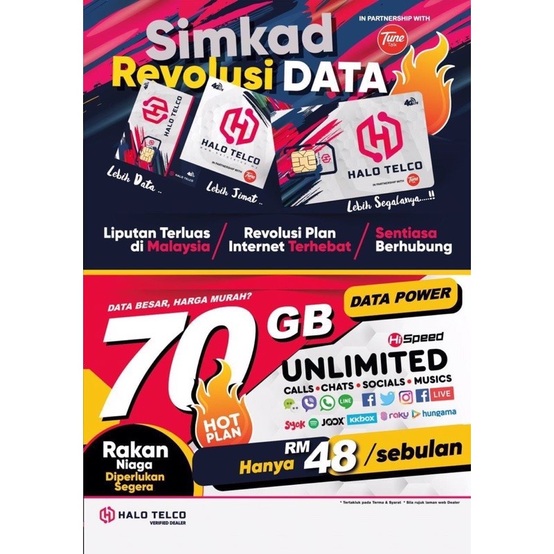 Simkad Unlimited Halo Telco Tune Talk Malaysia